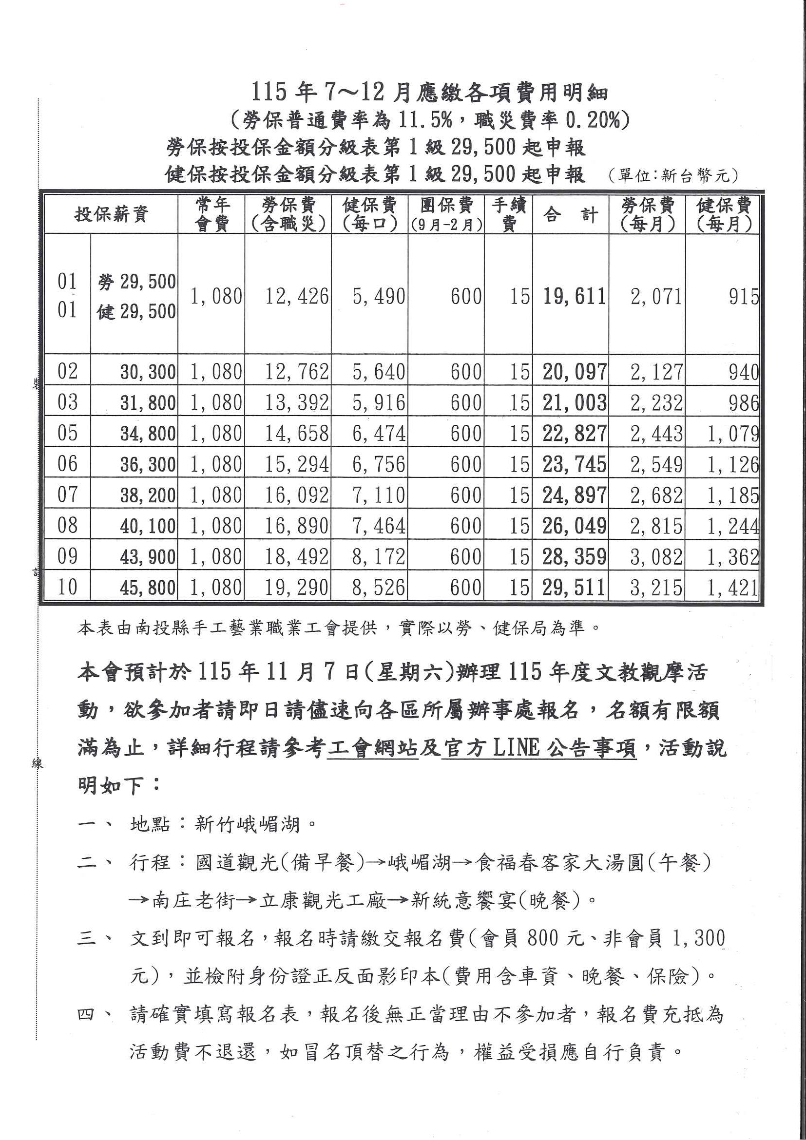 115年7月~12月應繳各項費用明細